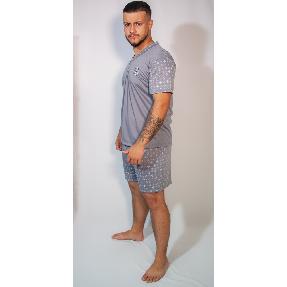 Belíssimo e confortável pijama de manga masculino, liso e estampado, produzido em algodão.